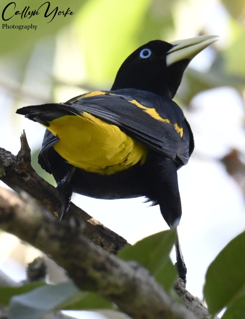 - Crested Oropendola Psarocolius decumanus 1 active in a forest edge tree at the visitor’s center, MUS