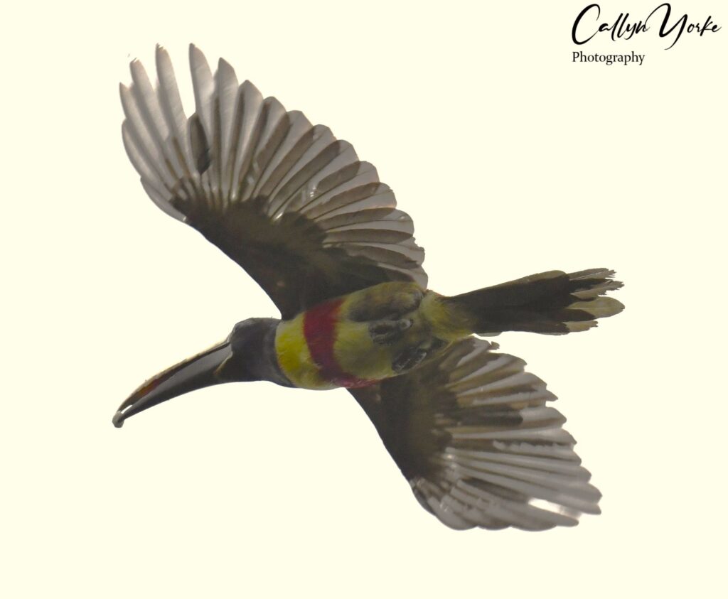 - Black-necked Aracari Pteroglossus aracari 2 individuals and pairs in cercropia trees, M (photo).