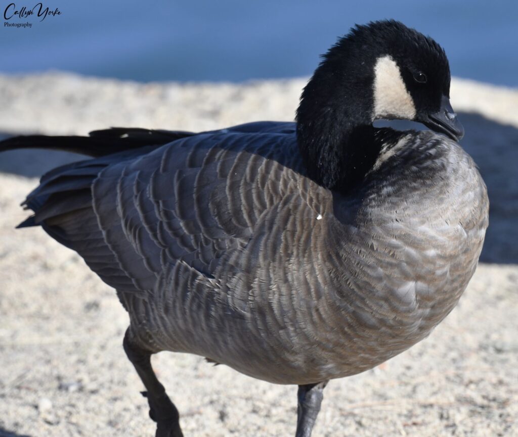 - Canada Goose 30 greg. on main beach and in shallows; vocal, swimming in open water; ubiq.(noted earlier, a flock of about 12 birds on lawn at entrance to Fox Field).