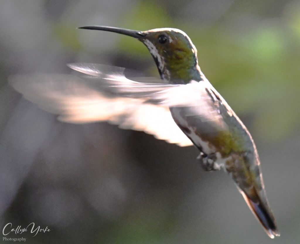 - Swallow-tailed Hummingbird Eupetomena macroura 1 msf of hummingbirds (see BTMA) at sugar water feeders, FI.