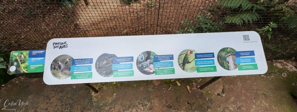 Concerning endangered species, Parque das Aves had abundant educational signage, especially for advertising their ongoing contributions to avian research and conservation, e.g. for the endemic Gray-breasted Parakeet of Ceará, Brazil. Wonderful. At least an undisclosed portion of annual revenue was going toward independent, non-profit education, research and conservation. I was afraid to ask where of the rest of the millions went.