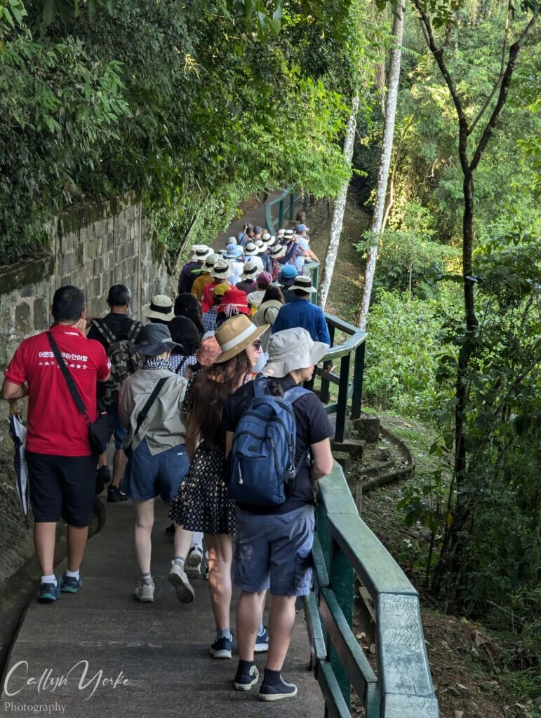 I wanted to have that item checked off on Friday morning before the weekend rush. A taxi from the hotel brought me to the park entrance early, before the ticket booths had opened. Hundreds of other visitors must have had the same plan. According to a line attendant, there was little difference between a weekday, weekend or holiday at Iguazu Falls National Park. He inspected my regular fare ticket (US $20) and informed me that the next double-decker shuttle to the falls would be in about an hour.