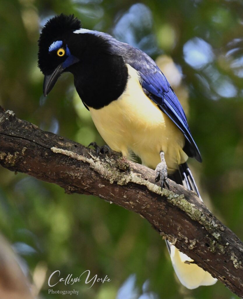- Plush-crested Jay Cyanocorax chrysops 6 greg. voc. primarily arboreal but sometimes foraging on the ground, FC; 1 CAF; 2 free-ranging in trees at entrance, PA.