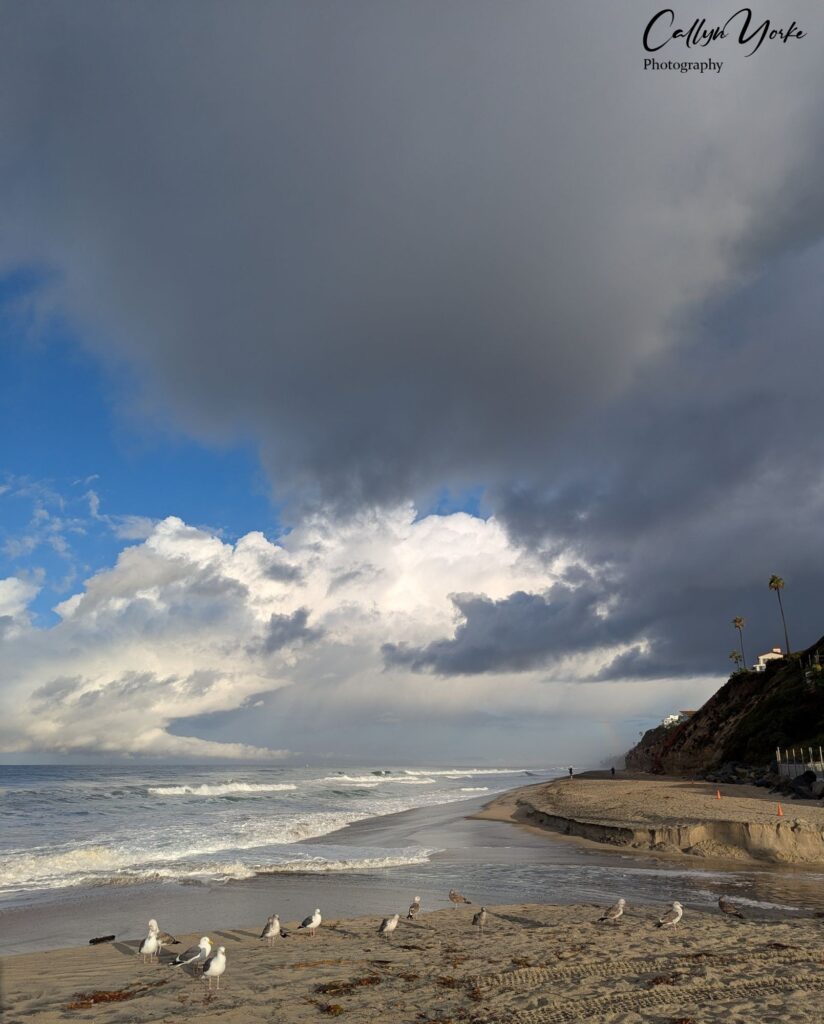 Based in Moonlight Beach, Encinitas (16-23 November, 2025) I made daily walking surveys that included the shoreline and adjacent suburbs (MB), Lower and Upper Cottonwood Creek, Ecological Reserves (LCC, UCC). Increasing numbers of visitors, many with dogs, appeared by 0900 hrs. throughout the week. Heavy rain and stream overflow apparently washed out homeless encampments in LCC and UCC, although there were still a few of those individuals congregating in UCC. Most of the deciduous trees (e.g. sycamore and willow) retained their foliage, which was largely in the state of autumn dieback. Stream flow was relatively swift in the two reserves, reaching maximum volume and velocity in the Moonlight Beach outlet channel to the sea. Highlights included, an immature (C1) Iceland (Thayer’s) Gull, Elegant Tern and Summer Tanager.