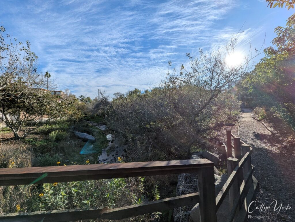 Northwest San Elijo Lagoon (SEL, 10/29/2024: 1225-1400 hrs.). From the visitor center, I walked the main trail south and westward along the main tidal channel, crossing two relatively new foot bridges, then on a trail paralleling the west and northwest sections of the tidal salt marsh. The main parking lot was full when I arrived; additional parking was available across the street from the SEL entrance at a public works facility, though apparently only for EV charging.